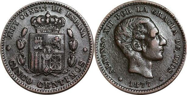 P5196 Spain 5 Centimos Alphonso XII 1877 OM -> Make offer
