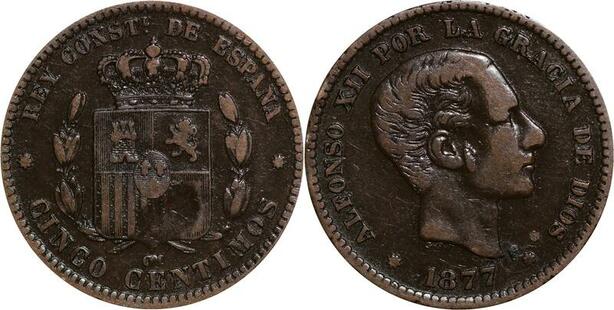 P5198 Spain 5 Centimos Alphonso XII 1877 OM -> Make offer
