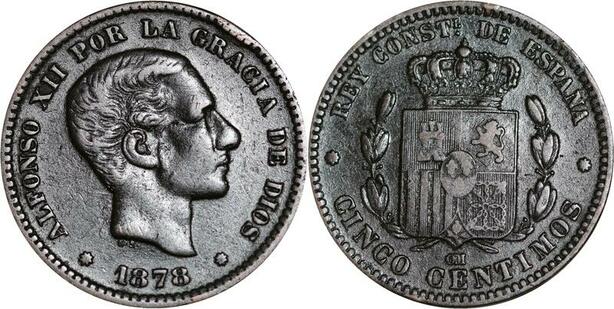 P5200 Spain 5 Centimos Alphonso XII 1878 OM -> Make offer
