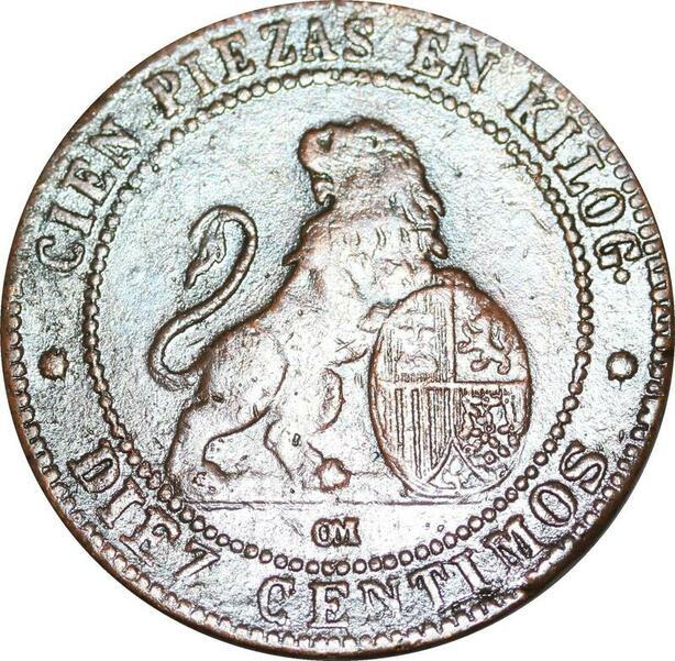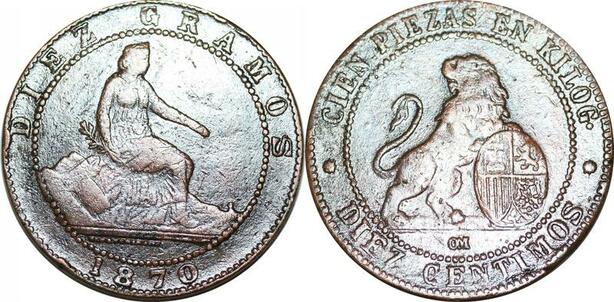 P5238 Spain 10 Centimos Provisional Government 1870 OM -> Make offer