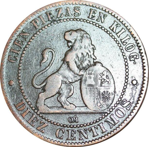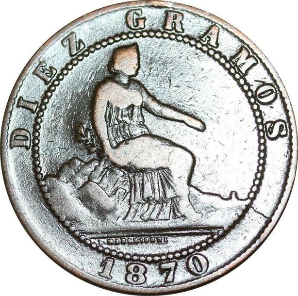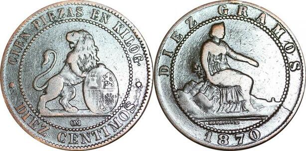 P5243 Spain 10 Centimos Provisional Government 1870 OM -> Make offer