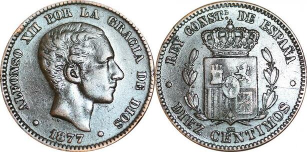 P5247 Spain 10 Centimos Alphonso II 1877 OM -> Make offer