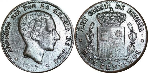 P5249 Fake Spain 10 Centimos Alphonso II 1878 OM -> Make offer