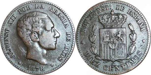 P5254 Spain 10 Centimos Alphonso II 1878 OM -> Make offer