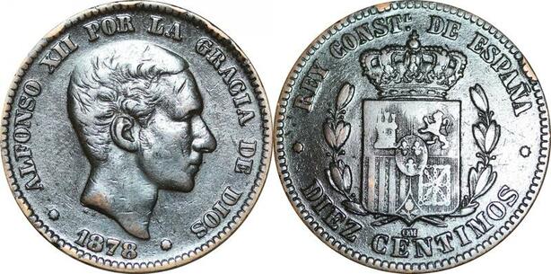 P5257 Spain 10 Centimos Alphonso II 1878 OM -> Make offer