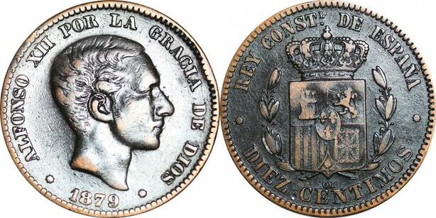 P5259 Spain 10 Centimos Alphonso II 1879 OM -> Make offer