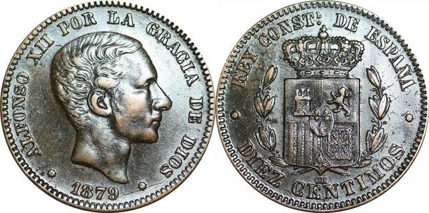 P5260 Spain 10 Centimos Alphonso II 1879 OM -> Make offer