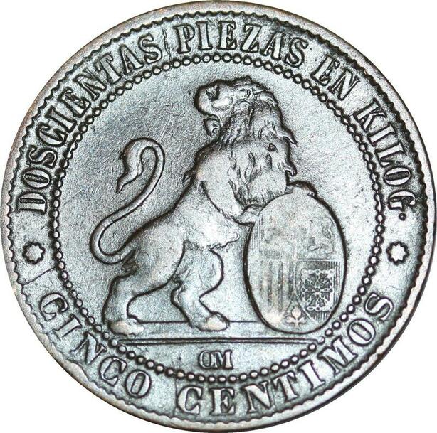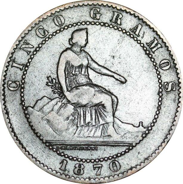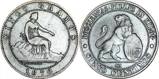 P5268 Spain 5 Centimos Provisional Government 1870 OM -> Make offer