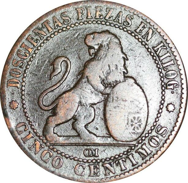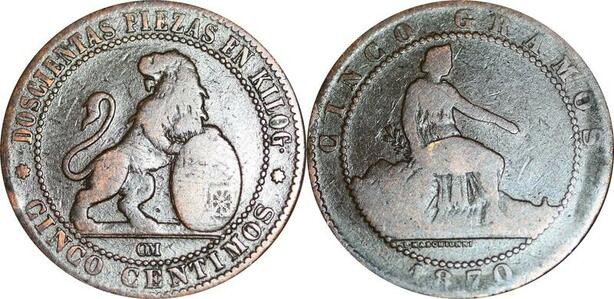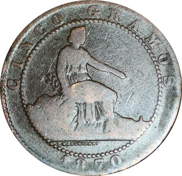 P5272 Spain 5 Centimos Provisional Government 1870 OM -> Make offer