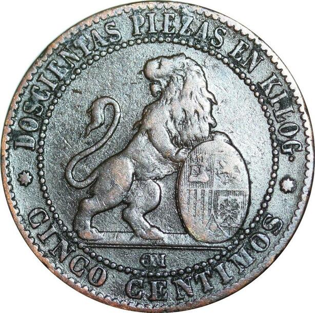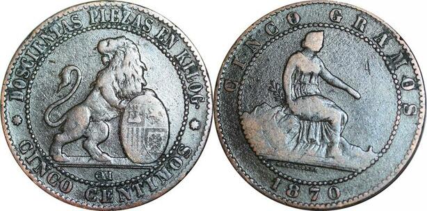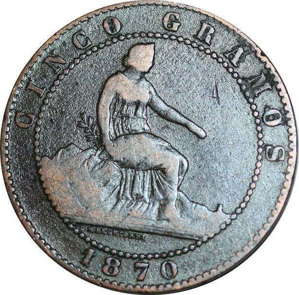 P5274 Spain 5 Centimos Provisional Government 1870 OM -> Make offer