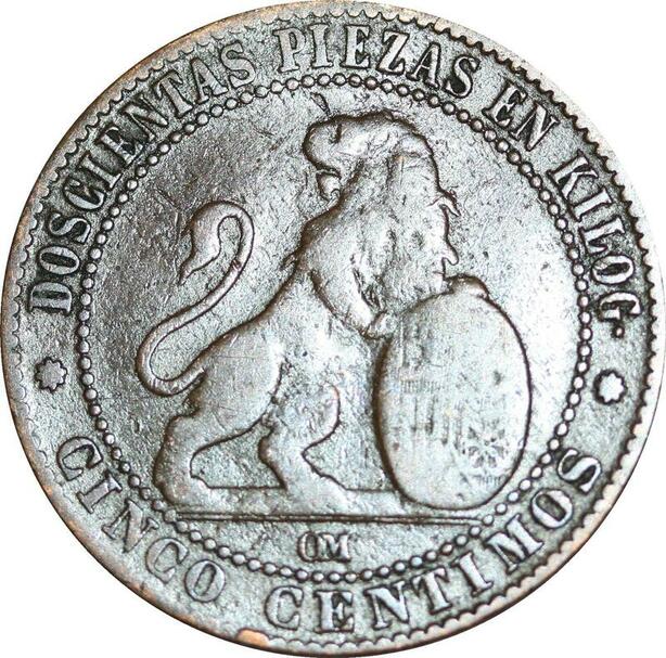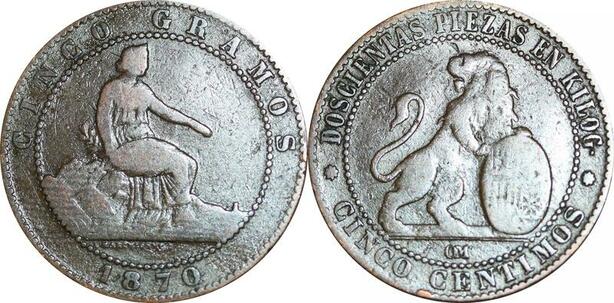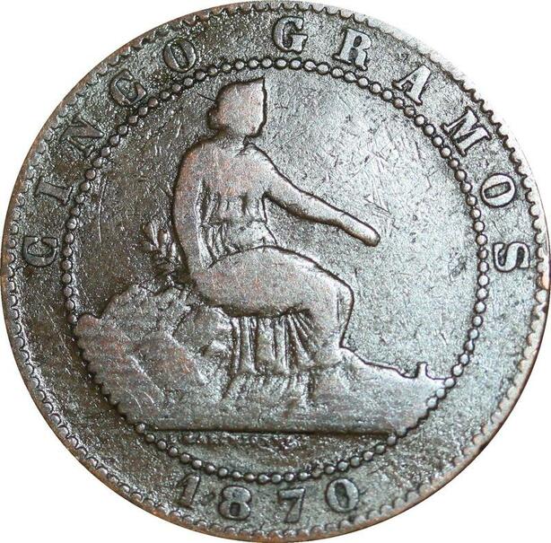 P5275 Spain 5 Centimos Provisional Government 1870 OM -> Make offer