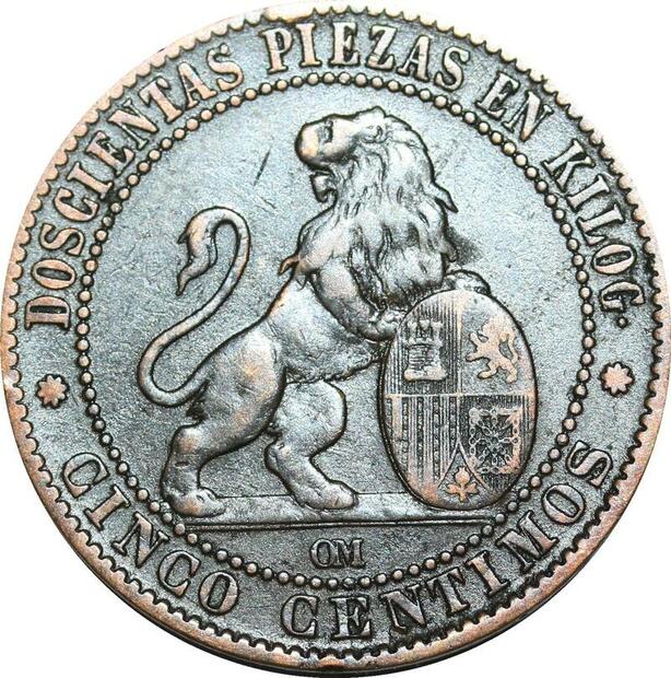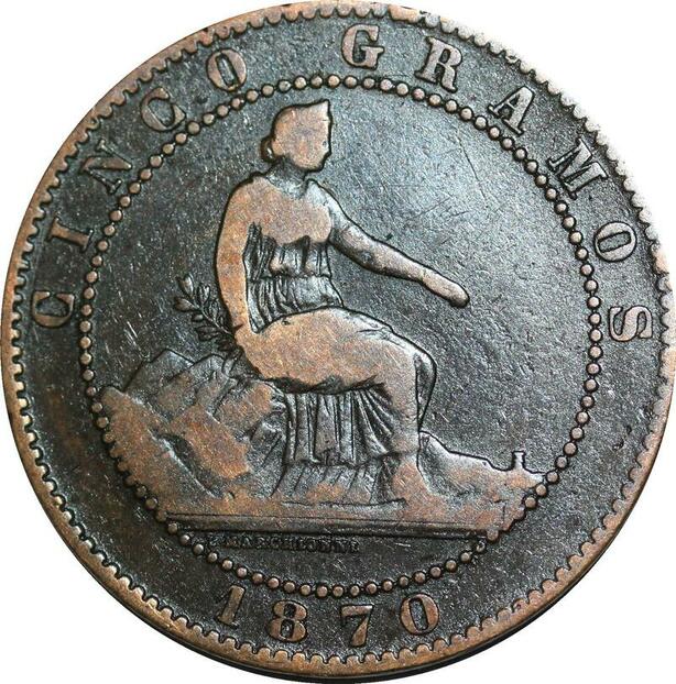 P5277 Spain 5 Centimos Provisional Government 1870 OM -> Make offer