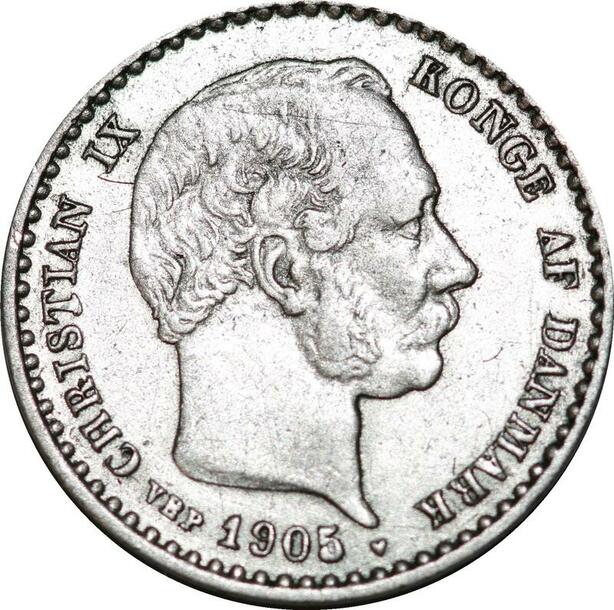 P5279 Denmark 10 Ore Christian IX 1905 VBP Silver -> M Offer
