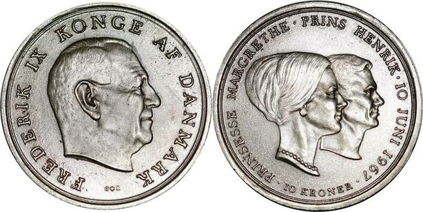 P5287 Denmark 10 Kroner King Frederik IX 1967 Silver UNC -> M Offer