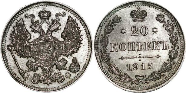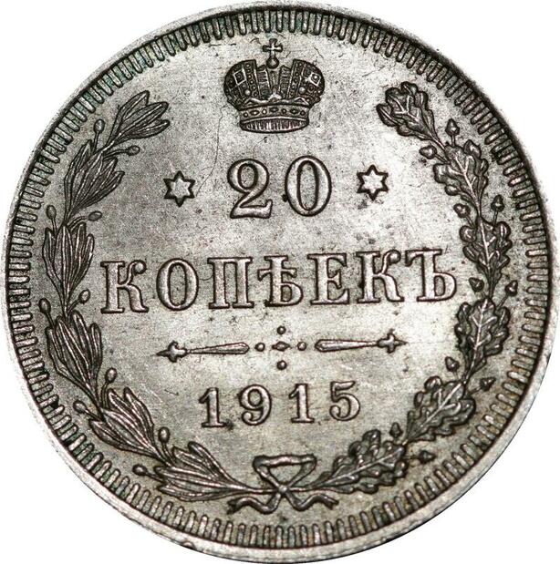 P5301 Russia 20 Kopecks Nikolai II 1915 BC Petrograd Silver AU-> M Offer