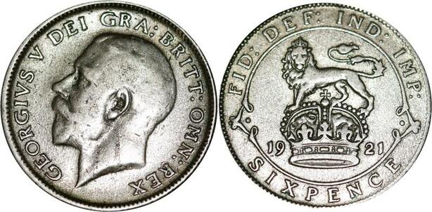 P5322 UK 6 Pence George V 1921 Silver -> M Offer