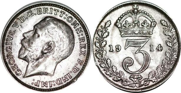 P5329 United Kingdom 3 Pence George V 1914 Silver -> M Offer
