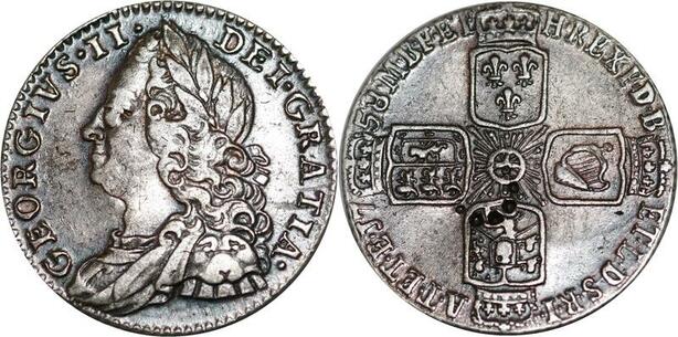 P5348 Rare UK 6 Pence George II 1758 /7 Silver AU -> M Offer