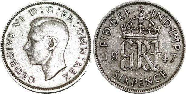 P5351 UK 6 Pence George VI 1947 Silver -> M Offer