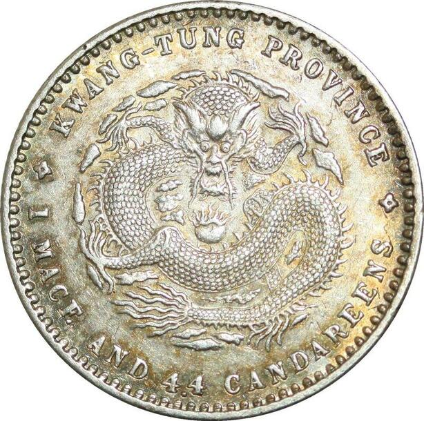 P5375 Rare China Kwangtung Kuang Hsü 20 Cents 1890 1908 Silver AU -> Make offer
