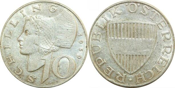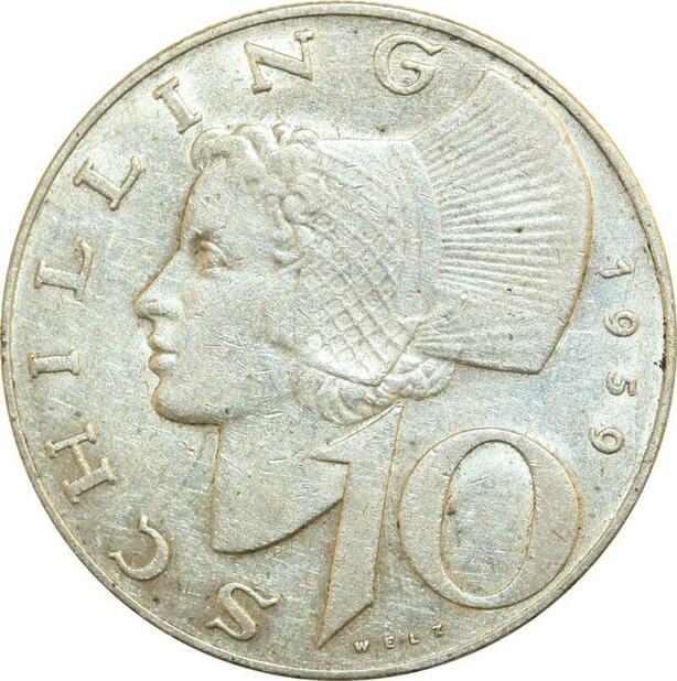 P5455 Austria 10 Schilling Woman Head 1959 Sliver -> M Offer