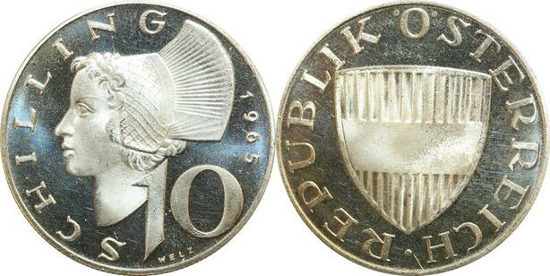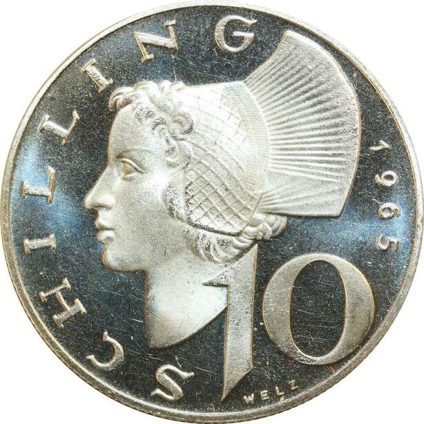 P5456 Austria 10 Schilling Woman Head 1965 Sliver Proof -> M Offer