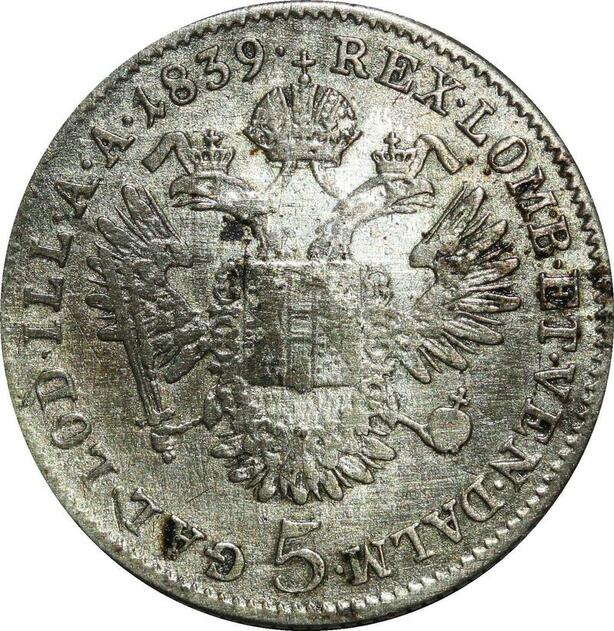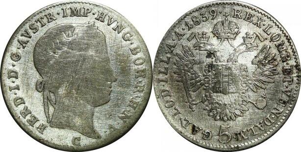 P5490 Austria 5 Kreuzer Ferdinand I 1839 C Silver -> M Offer