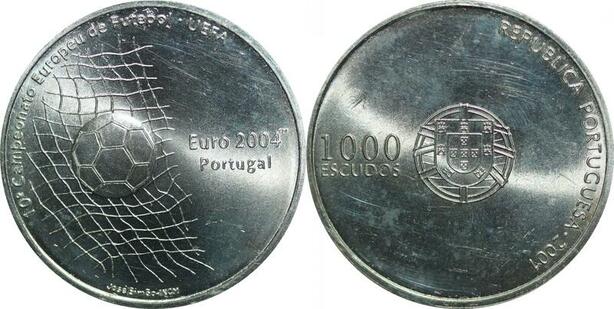 P5497 Portugal 1000 Escudos Euro UEFA Football 2004 Silver UNC -> M Offer