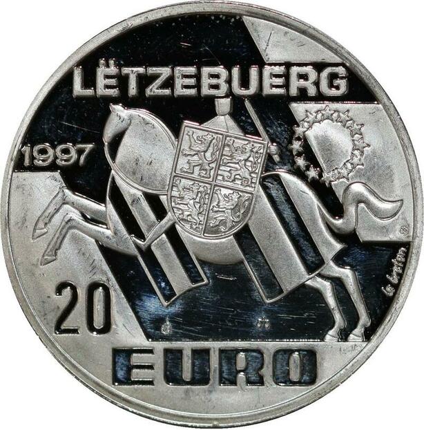 P5547 Luxembourg 20 Euros Michel Lentz 1997 Silver Proof -> M offer