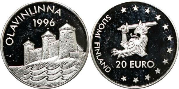 P5577 Finland 20 Euros Olavinlinna Suomi 1996 Silver Proof -> M Offer