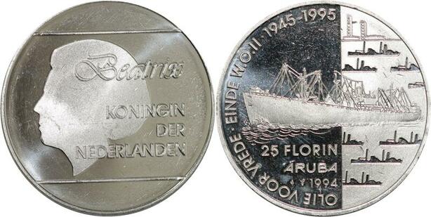 P5582 Netherlands 25 Florin WWII Beatrix 1945 1995 Silver Proof -> M Offer