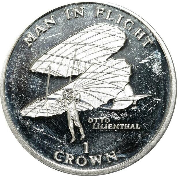 P5586 Man Island Crown Elizabeth II Flight Otto Lilienthal 1994 Silver Proof