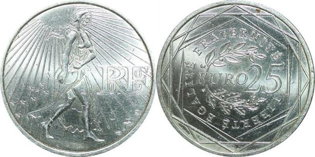 P5595 France 25 Euros La semeuse 2009 Silver UNC -> M offer