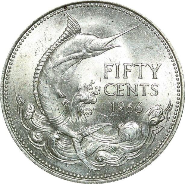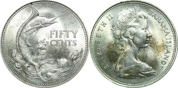 P5603 Bahamas Island 50 Cents Elizabeth II 1966 Silver UNC -> M offer