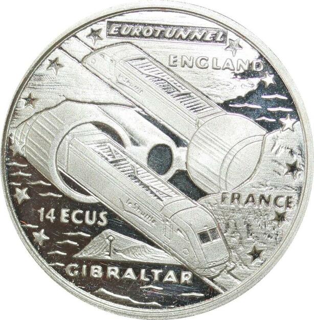 P5606 Gibraltar 14 Ecus Elizabeth II Eurotunnel 1993 Silver Proof -> M offer
