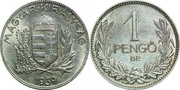 P5617 Hungary Pengo Magyar Kiralysag 1939 Silver AU -> M offer