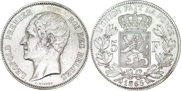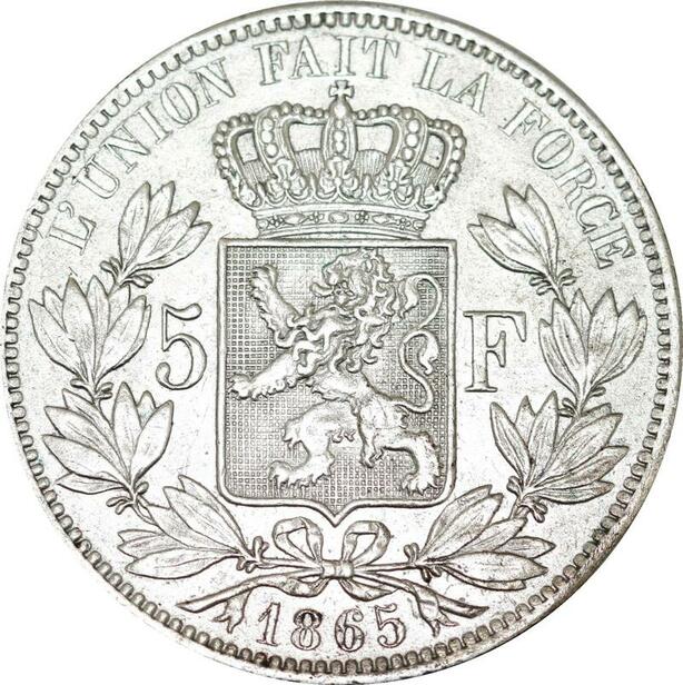 P5644 Rare Belgium 5 Francs Leopold Ier 1865 Silver -> M Offer