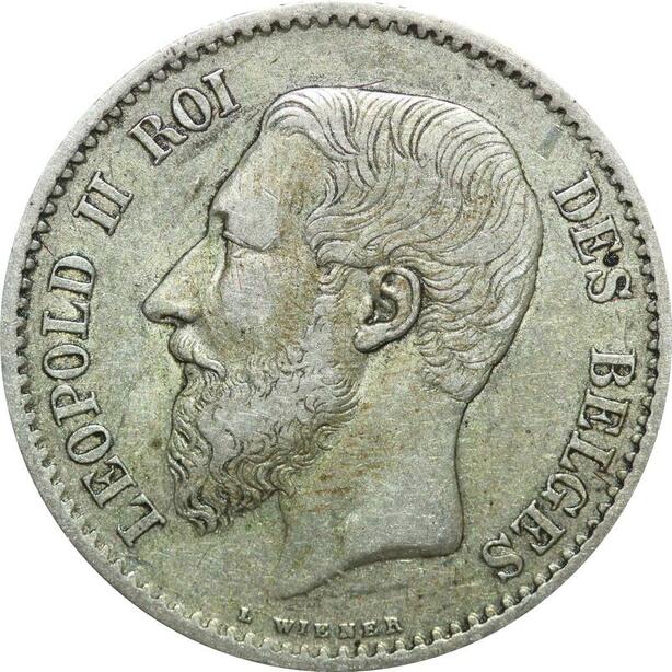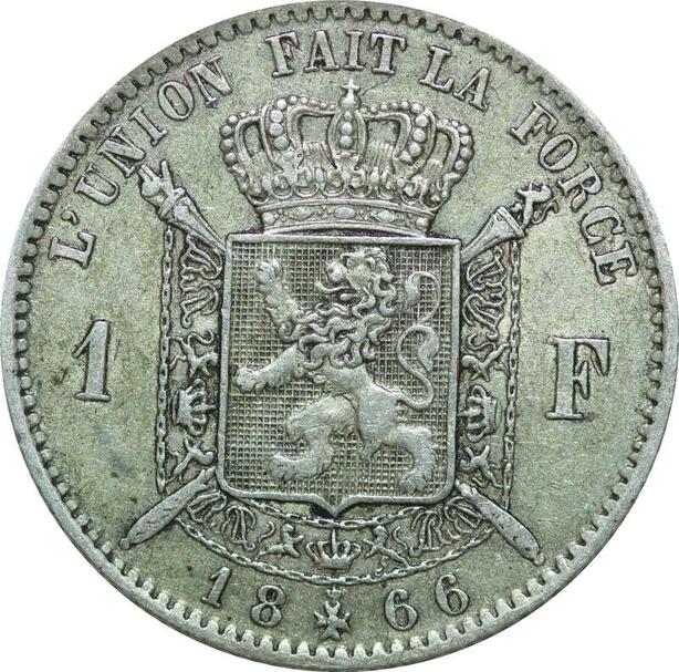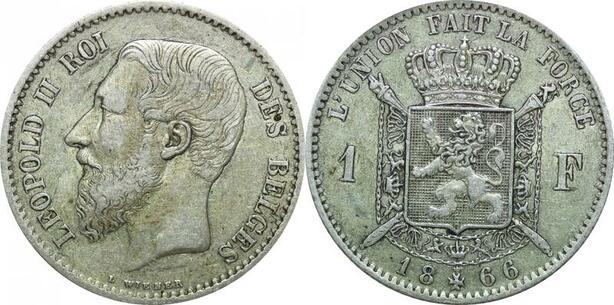 P5666 Belgium 1 Franc Leopold II 1866 Silver -> M Offer