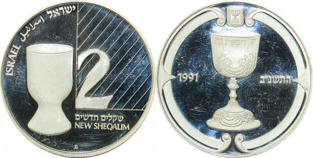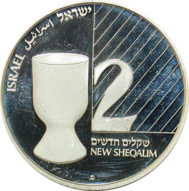P5690 Israel 2 New Sheqalim Kiddush Cup 1997 Silver Proof -> M Offer