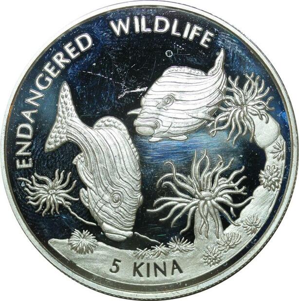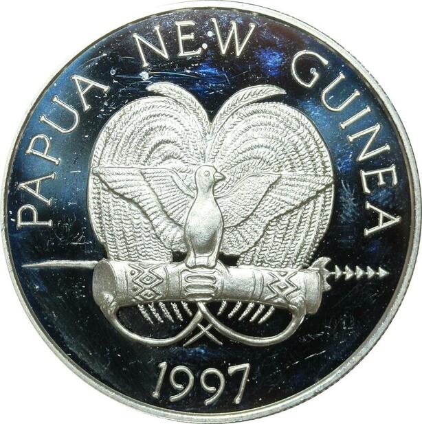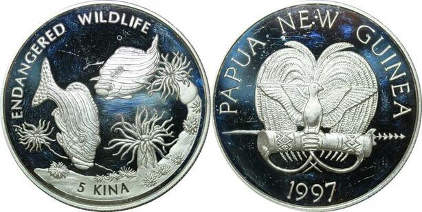 P5696 Papua New Guinea 5 Kina Fish Bird 1997 Silver Proof -> M Offer