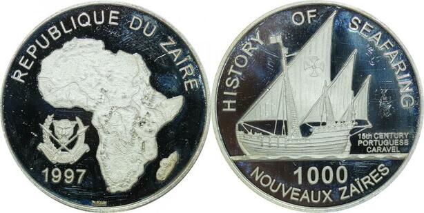 P5699 Zaïre Congo 1000 New Seaparing Portuguese Caravel 1997 Silver Proof -> M Offer
