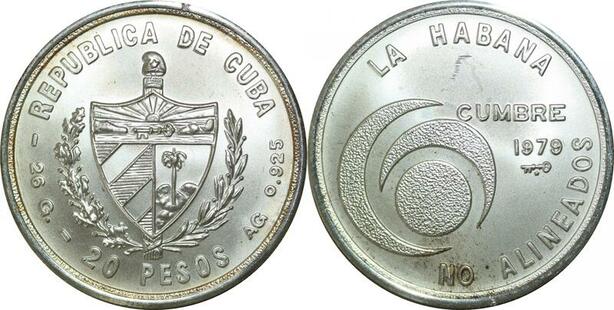 P5707 Cuba 20 Pesos La Havana Cumbre 1979 Silver UNC -> M Offer