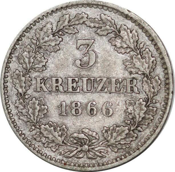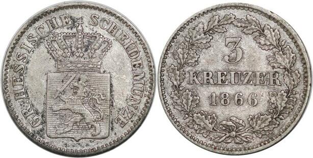 P5786 Germany Hesse Darmstadt 3 Kreuzer Ludwig III 1866 Silver -> M Offer