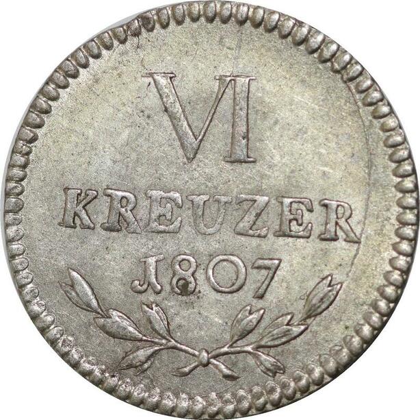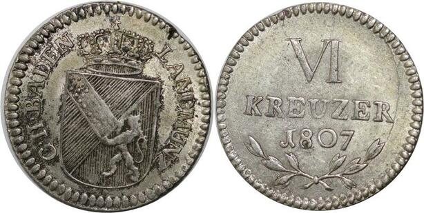 P5788 Rare Germany Baden 6 Kreuzer Karl Friedrich 1807 Silver -> M Offer