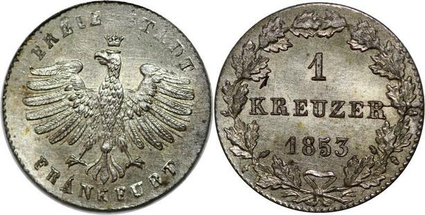 P5790 Germany Frankfurt am Main Kreuzer 1853 Silver UNC -> M Offer