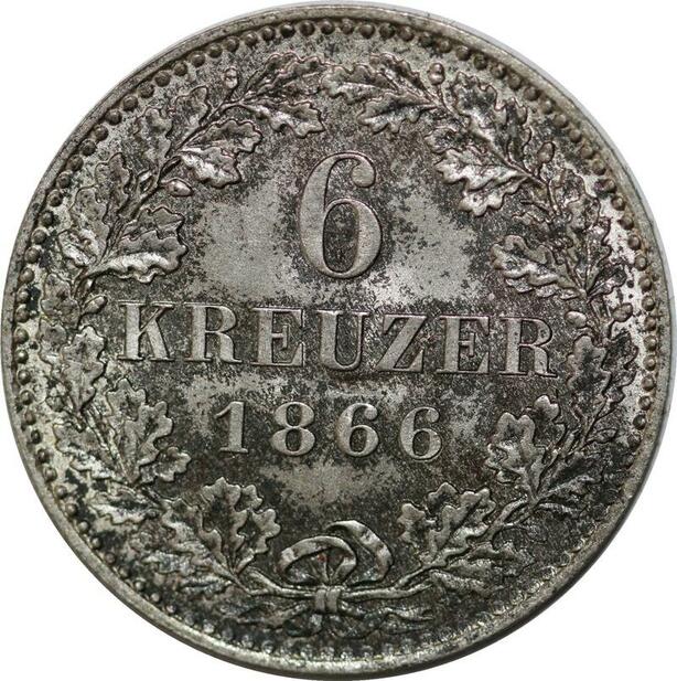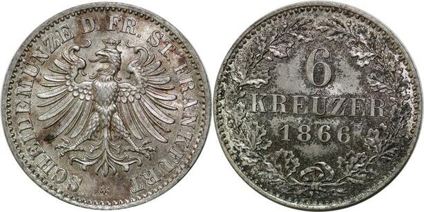 P5791 Germany Frankfurt 6 Kreuzer 1866 Silver UNC -> M Offer