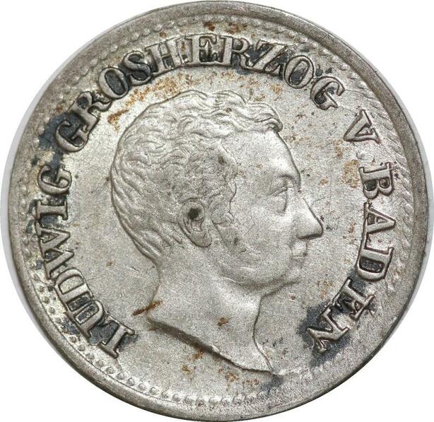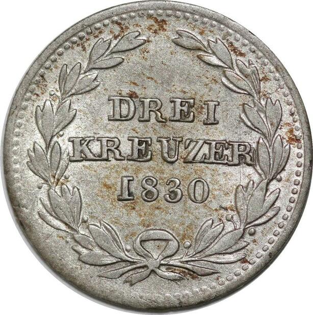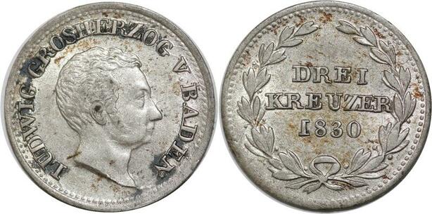 P5793 Germany Baden 3 Kreuzer Ludwig I 1830 Silver AU -> M Offer