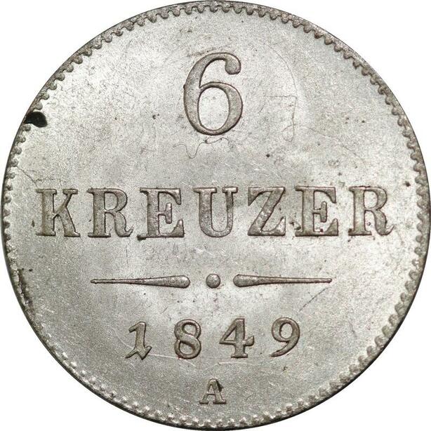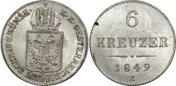 P5795 Austria Haus Habsburg 6 Kreuzer Franz Joseph 1849 A Silver UNC