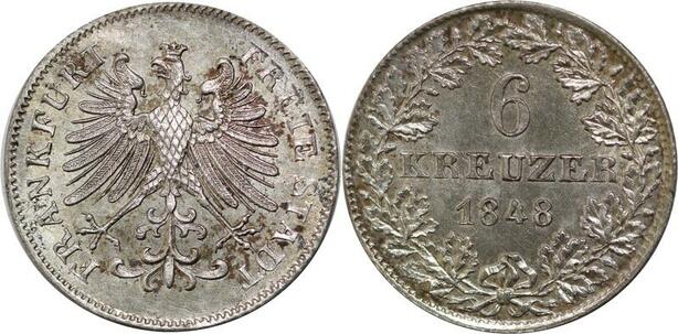 P5802 Germany Frankfurt am Main 6 Kreuzer 1848 Silver UNC -> M Offer