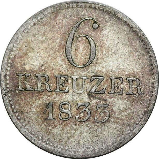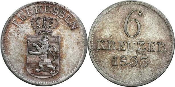 P5806 Rare Germany Hessen Cassel 6 Kreuzer Wilhelm II 1833 Silver -> M Offer